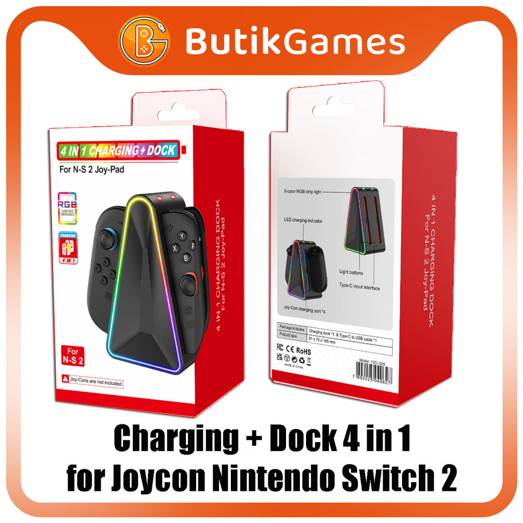 aya Joy-Con Nintendo Switch 2 (NS2 / Switch 2) Anda. Dirancang khusus agar kompatibel dengan Joy-Con generasi terbaru, docking charger ini memungkinkan pengisian hingga 4 Joy-Con secara bersamaan, sehingga sangat cocok untuk pengguna yang sering bermain multiplayer bersama keluarga atau teman.