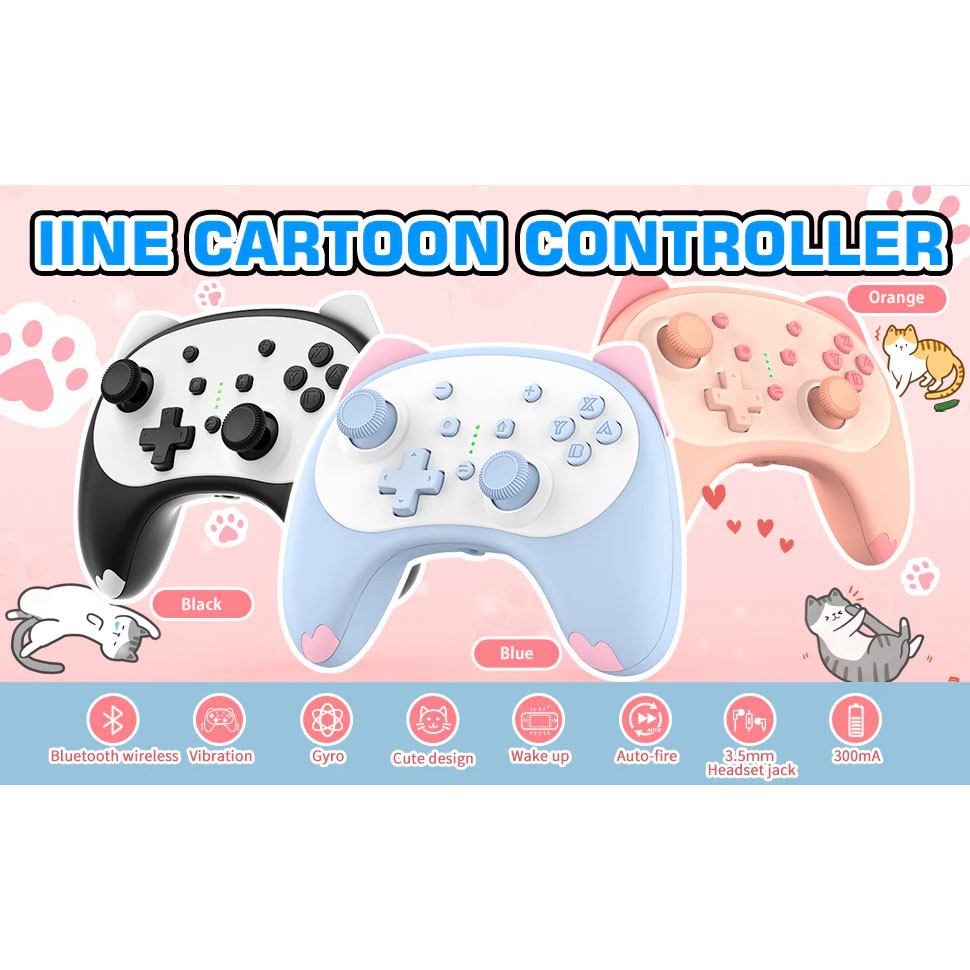 IINE L416 Cartoon Cat Wireless Controller for Nintendo Switch Bluetooth Gamepad Turbo Vibration