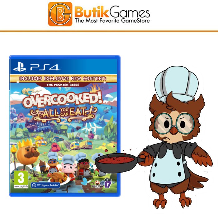 Overcooked! All You Can Eat – PS4 adalah game party seru yang wajib dimiliki bagi kamu yang suka bermain bersama keluarga atau teman. Versi ini merupakan paket lengkap yang berisi Overcooked!, Overcooked! 2, serta semua DLC yang pernah dirilis, sehingga kamu bisa menikmati ratusan level memasak penuh tantangan dalam satu game.
