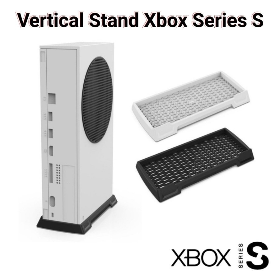 Aksesoris Dudukan Konsol Xbox Series S Stand vertikal khusus untuk Xbox Series S yang membuat posisi konsol lebih kokoh, hemat tempat, dan mudah dipasang. Dilengkapi desain lubang bagian bawah sehingga tidak mengganggu sirkulasi udara dan pembuangan panas konsol.